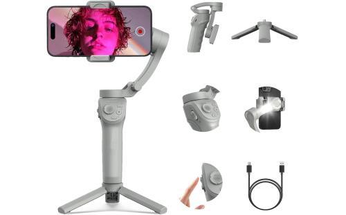 スマホ用ジンバルスタビライザー 3軸折りたたみ式ジンバル 顔のトラッキング付きLEDライト調光可能ビデオ録画用 TikTok YouTube Vlogスタビライザー AndroidおよびiPhone 15/15 Pro Max/14/14 Pro用 : 家電&カメラ