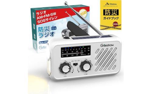 Greeshow 防災ラジオは、手回し充電、ソーラー充電、防水仕様など多機能を備えた緊急時に頼りになる携帯ラジオです。