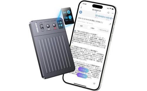 AIボイスレコーダー CHIME NOTE PROは、ワンタッチで録音でき、文字起こしや自動要約が可能な高機能ICレコーダーです。費用が無料で無制限に使用できる点も大きな特徴です。このレコーダーはGPT-4と連携しており、議事録の自動作成や通話録音が簡単に行えます。また、マインドマップの作成やオンライン文字起こし、同時通訳、チャットルーム機能も備えています。さらに、64GBの大容量ストレージ、3000mAhのバッテリー、Bluetooth接続、ワイヤレス充電に対応しており、会議、授業、旅行など様々なシーンで活躍します。