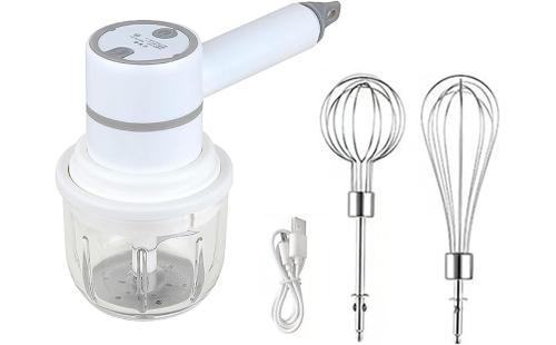 ハンドミキサー USB充電式 キッチン家電 速度3段切り替え機能搭載 泡立て器 電動ミキサー 1台多役 収納 調理器具 軽量 飛び散り防止 お菓子作り スムージー省スペース おしゃれ 250mlカップ付き 1セット