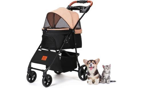 Aikenn ペットカート 犬用ベビーカー 小型犬 折り畳み ペットキャリーカート ペットバギーミニ 4輪タイプ 犬介護用 猫用 猫犬兼用 前輪360°回転 後輪ブレーキ付 飛び出し防止 軽量 ワンタッチ開閉 組み立て簡単 耐荷重15KG 犬用おでかけ用品 (ベージュ) : ペット用品