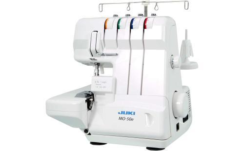 JUKI(ジューキ)のMO-50eNは初心者でも使いやすい2本針4本糸差動送り付きのロックミシン。差動送り調節やワンタッチ巻き縫いなど、優れた機能を備えています。