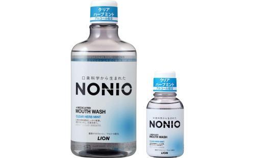 NONIO(ノニオ) マウスウォッシュ クリアハーブミントは、口臭予防に特化した医薬部外品の洗口液です。この商品は、600mlのボトルに加え、持ち運びに便利な80mlのミニリンスがセットになっています。