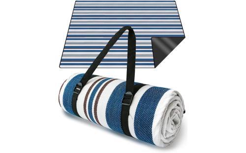 このレジャーシートはラインブルーのカラーで、コンパクトに収納できるのが魅力的です。ピクニックやアウトドアイベントで活躍しそうですね!