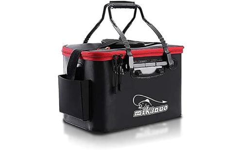 特徴: このバッカンはEVA製で軽量かつ丈夫な作りです。50cmのサイズで35Lの容量があり、釣りやキャンプなどのアウトドア活動に便利です。さらにポケット付きで小物の収納もしやすくなっています。