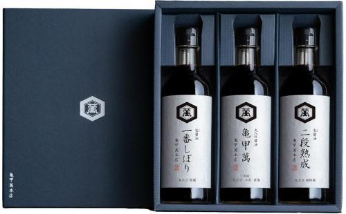 亀甲萬本店 醤油[三種アソート] 一番しぼり1本+亀甲萬1本+二段熟成1本 贈答箱入り 高級醤油 ギフトセット しょうゆ ギフト 本醸造 キッコーマンは、日本の伝統的な高級醤油を3種類詰め合わせた贈答用のセットです。