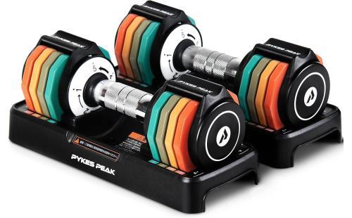 Amazon | PYKES PEAK(パイクスピーク) 可変式 ダンベル 5kg 10kg 25kg アジャスタブル 1個 2個セット 簡単重量変更 クイックダンベル 筋トレ 宅トレ器具 ウエイトトレーニング (5kg2個セット/レインボー) | PYKES PEAK | ダンベル・アレー