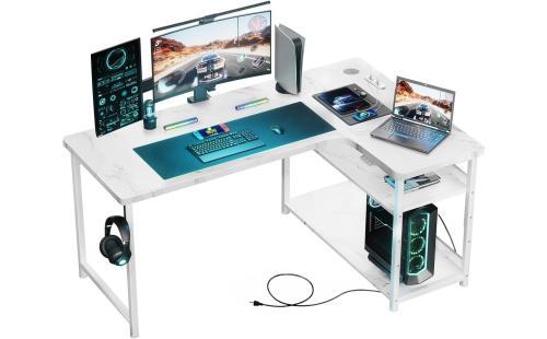 GTRACING ゲーミングデスク パソコンデスク L字 コンセント付き ラック付き モニターアーム対応 棚高さ調節可能 配線穴付き 右棚 79奥行き*110幅*74.5高さ DL001 MARBLE WHITE 白 ジーティーレーシング 机 pcデスク 勉強机 オフィスデスク 書斎デスク 棚付きl字デスク ゲームデスク ワークデスク : 文房具・オフィス用品