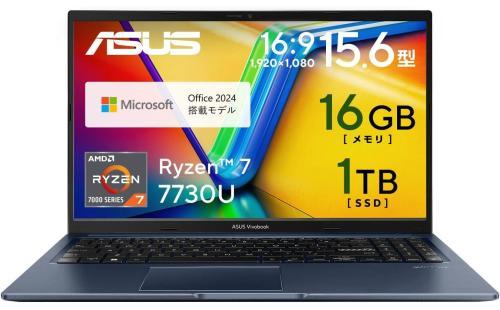 【Amazon.co.jp限定】 ASUS ノートパソコン Vivobook 15 M1502YA 15.6型 AMD Ryzen 7 7730U メモリ16GB SSD 1TB MS Office 2024搭載 Windows 11 バッテリー駆動 12.9時間 重量1.7kg Wi-Fi 6E クワイエットブルー M1502YA-R7161BLWS : パソコン・周辺機器