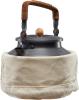 持ち運びやすさ: このケトルは軽量であり、持ち運びがしやすい設計となっています。木製の取っ手と綿コードラップハンドルが付いており、使いやすさを重視しています。