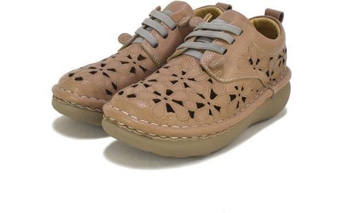 エスタシオン(Estacion)のレザーカットスニーカーは、本革を使用したデザイン性の高いスニーカーです。フラワーモチーフのレザーカットが施されており、カジュアルながらも個性的な印象を与えます。ゴムヒモ仕様のため、脱ぎ履きがしやすく、快適なフィット感を提供します。