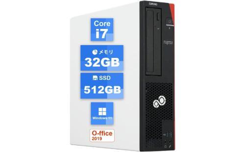 【整備済み品】富士通 デスクトップFUJITSU ESPRIMO D588 第8世代タワーPC Core i7-8700/最大4.6GHZ/32GBメモリ・512GB SSD/Windows11Office・2019初期設定済/WiFi/Bluetooth対応/180日保証付 (メモリ32GB+SSD512GB)