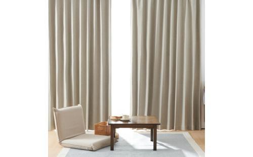 A. 厚手だけど柔らかく、カラーがベージュの無地なので圧迫感はなし。むしろ部屋が落ち着いた雰囲気になります。