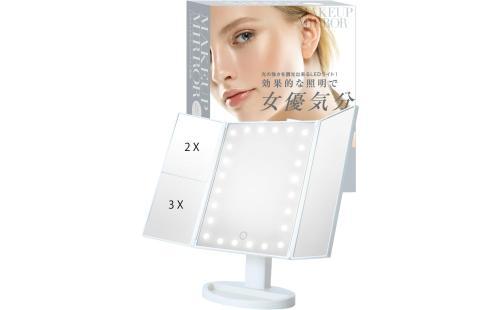 WIDREAM【メイクアップアーティスト監修】LEDライト付き 三面鏡 女優ミラー 化粧鏡 卓上ミラー 卓上鏡 鏡 (LED付三面鏡・ホワイト)