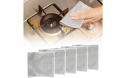 見た目はただの銀色の布。でも侮るなかれ。これは2025年モデルの「多目的ワイヤー食器洗い用ぞうきん(5枚セット)」という、ちょっと未来感あるキッチンアイテム。素材はメタルワイヤー繊維を織り込んだ特殊布で、用途は食器洗いからシンク掃除まで幅広く対応。まさに“ぞうきん”という名のオールラウンダー。