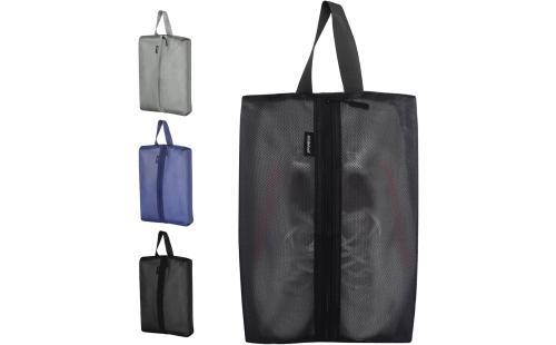 素材は軽量かつ破れにくいポリエステル製防水・防塵仕様で、雨の日やアウトドアでも安心。さらに通気性も備えているので、ムレやニオイが気になる場面でも頼りになります。持ち手付きで持ち運びもラクラク、開口部が広くて出し入れもスムーズです。