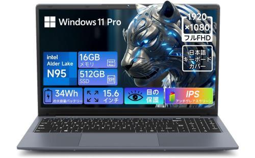 【ノートパソコン 16GBメモリ+512GB SSD Intel N95 最大3.4GHz N5095より速い】ノートパソコン 15.6インチ 1920×1080 IPS液晶 Win11Pro、34Wh大容量バッテリー ノートPC USB3.2+Type-C+FullHD+高速放熱+静音 デスクトップpc WIFI5/BT5.0/HDMI/TFカード対応/テンキー付き/日本語キーボードカバー