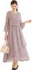 デザインは、繊細なレースと軽やかなシフォンの異素材ミックス。袖あり&ロング丈で露出を控えつつ、レースの透け感が程よい華やかさを演出します。ウエストはゴム仕様で、見た目以上にラクな着心地。サイズ展開もS〜4Lと豊富で、大きめサイズや体型カバーを求める方にも安心。カラーはネイビー、グレイッシュブルー、ベージュなど、シーンに合わせて選べる落ち着いたラインナップです。