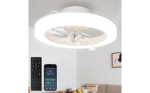 SUKITEN シーリングファンライト led 3,500LM ファン付き照明 サーキュレーター 120W相当 8~10畳 無階段調色調光 DCモーター 正逆回転 常夜灯モード 風量6段階調節 昼光色 昼白色 電球色 メモリ/タイマー機能 APP/2.4Gリモコン付き 簡単取り付けタイプ 薄型 おしゃれ 照明器具 換気 省エネ Φ50cm【工事不要】