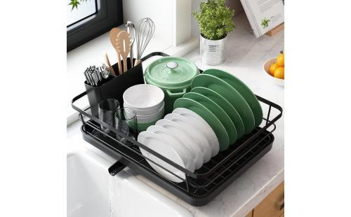 Kitsure 食器水切りラック - スペース節約型の水切りかご カトラリーボックス付き食器乾燥ラック 奥行き30.5cm×幅39.6cm ブラック