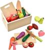 CARLORBO おもちゃ おままごと 新鮮お野菜&果物 木製切れちゃう!マグネット式 フルーツ&おやさいセット 子供 モンテッソーリ玩具 木箱入り