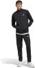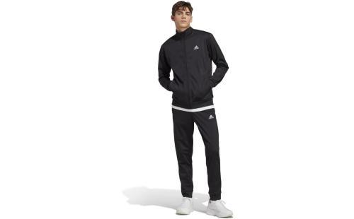 今回レビューするのは《adidas トリコット トラックスーツ メンズ》(型番:B0BGX83J2)。上下セットで、カラーは定番のブラック×ホワイト。対象はメンズですが、シンプルなデザインなので女性が着ても違和感なし。