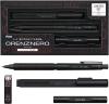 ぺんてるのシャープペン界で最上位に位置づけられるのが、このオレンズネロ。書くたびに芯が自動で前に出る独自機構で、「折れないシャープペン」として知られるシリーズのフラッグシップです。今回レビューするのは、そのネロ本体に金属製の替え芯ケースとクリック式消しゴムがセットになった限定モデル。見た目も中身も、ちょっと特別感のあるパッケージになっています。