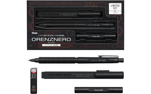 ぺんてる シャーペン オレンズネロ ブラック 0.5mm 限定 金属替え芯ケースとクリックイレーザー付き PP3005-AST