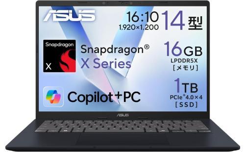 【Amazon.co.jp限定】 ASUS ノートパソコン Vivobook 14 X1407QA 14インチ Qualcomm Snapdragon X X1-26-100 メモリ16GB SSD 1TB Windows 11 バッテリー駆動 21.8時間 重量 1.49kg Type-C給電対応 Copilotキー搭載 AI PC クワイエットブルー X1407QA-PU161W