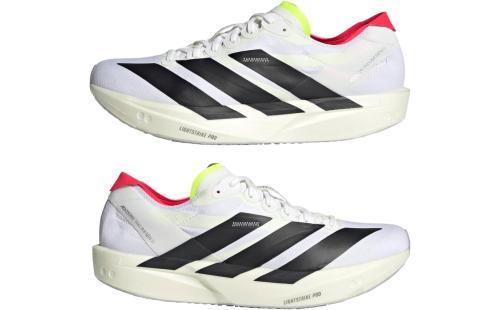 まず驚くのは、その軽さ。片足200g未満の軽量設計で、手に取った瞬間に「え、これ本当にシューズ?」と思うレベルです。ミッドソールにはアディダス自慢の“ぷにゅっ”と反発するLightstrike Proを採用し、前足部にはカーボンではなくグラスファイバー製のEnergyRods 2.0を搭載。これが“しなり”を活かした自然な推進力を生み、無理に踏み込まなくてもテンポよく前に転がる感覚をつくってくれます。
