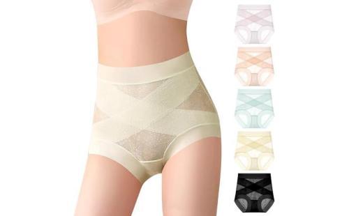 [veimia] ショーツ レディース 深め【5枚セット・X字型バンド・優しくお腹を引き締め】ハイウエストショーツ シームレス 柔らかい 伸縮通気 蒸れない お腹まで包む 締め付けない 美尻ショーツ 大きいサイズ 女性 下着