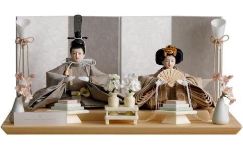 セット内容は、男雛・女雛の親王飾りに加え、檜の香りがふわりと漂う上質な檜平台、シンプルで清潔感のある白屏風、小物類までしっかり揃ったフルセット。届いたその日からすぐに飾れる手軽さも魅力です。サイズは非常にコンパクトで、奥行きの浅い棚でも問題なく置けるため、「雛人形は飾りたいけど、場所がない…」という家庭でも気軽に楽しめます。