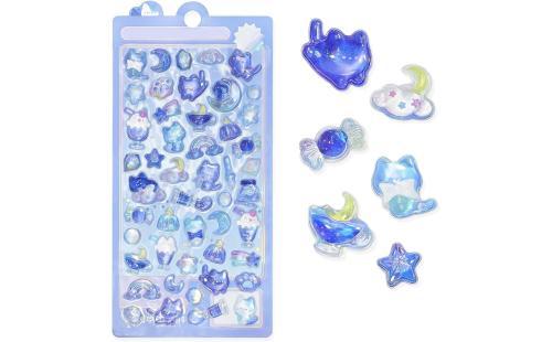 シール 可愛い 3d立体ごほうびシール 女の子 キラキラ ステッカー 手帳用 diy用 水筒用 携帯電話飾り用 手芸用品 贈り物(青い猫)