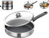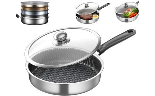 [mocoly]【一生モノのステンレス鍋】ステンレス鋼フライパン 26/28/30cm ステンレス フライパン IH対応 深型 5層構造 超軽量 焦げ付き防止 強化ガラス蓋付き 片手鍋 無煙 高熱効率 くっつかない 有害物質を含まない すべての調理台に対応 手入れが簡単 食器洗い機対応 (28cm)