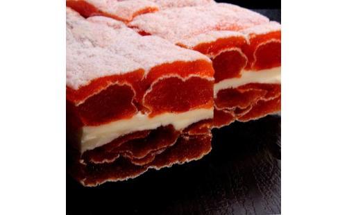 市田柿ミルフィーユは、長野県名産の市田柿を贅沢に使った、和と洋がしっとり溶け合うスイーツです。干し柿の自然な甘みをそのまま生かしつつ、間にバターを丁寧に挟み込むことで、まるで小さなミルフィーユのような層が生まれています。