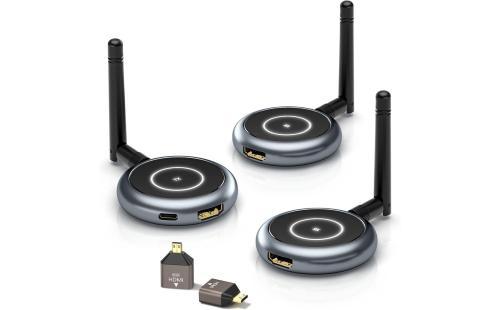 AIMIBO ワイヤレス HDMI 送受信機セット 1×送信機+2×受信機 受信機8台増設可能 拡張モード対応 1080P/5Ghz/50m安定転送距離 HDMI 無線 映像音声同期出力 ストリーミングメディア 日本技適認証済