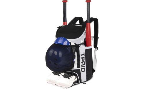 A:野球道具と通学用品を一緒に入れても余裕があります。スパイクはシューズ収納、ヘルメットは前面ホルダー、教科書やPCはメインスペースと、役割が分かれているため実際の容量以上に整理しやすい構造です。