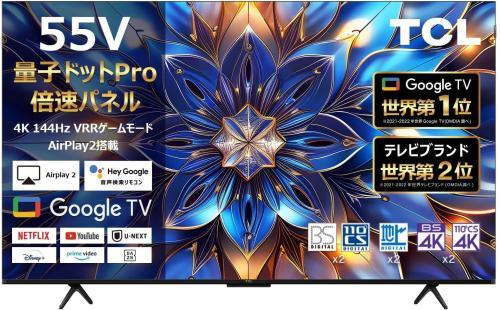 Amazon | TCL 55V型 4K液晶 倍速 テレビ 量子ドットPro 55T8B Google TV AirPlay2 ネット動画対応 Dolby Atoms ゲームモード HDMI2.1対応 4Kチューナー内蔵 Alexa対応 2024年モデル | テレビ 通販