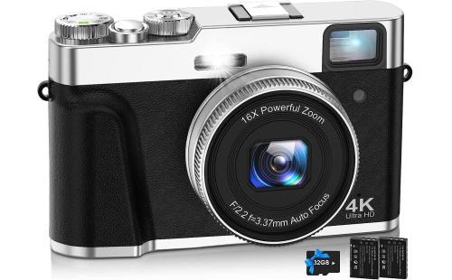 Amazon | NEZINI 4K デジタルカメラ オートフォーカス デジカメ 4800万画素 Vlogカメラ 手振れ補正 光学ファインダー モードダイヤル 16倍ズーム LEDライト デジタル一眼レフ コンパクト ホットシュー 外部マイク/フラッシュ対応可 32GBカード付属 バッテリー2個付き 子供の日 新年 クリスマス ギフト(ブラック) | コンパクト 通販