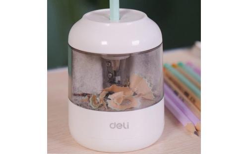 Deli 電動鉛筆削りは、高速切削で鉛筆を素早くシャープに削る便利な電動シャープナーです。色鉛筆にも対応し、美しいデザインが特徴です。