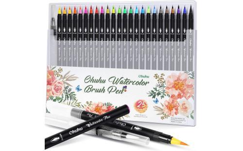 Ohuhu 水彩ペン 水彩毛筆24色 水ペン1本 筆ペン カラー セット 水彩筆 水性 水彩画 レタリング 透明 学習教材 画材 収納ケース付き