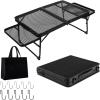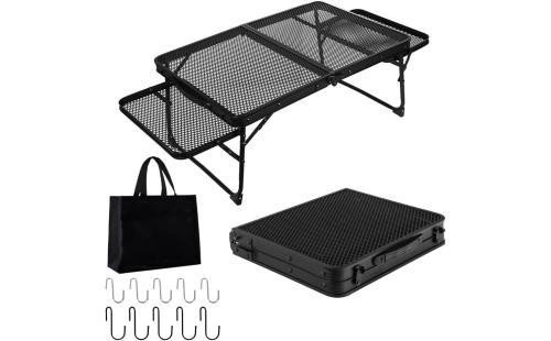 UPFのキャンプテーブルは、軽量で持ち運びが簡単。メッシュとフラットの天板があり、耐熱性と耐荷重性に優れています。