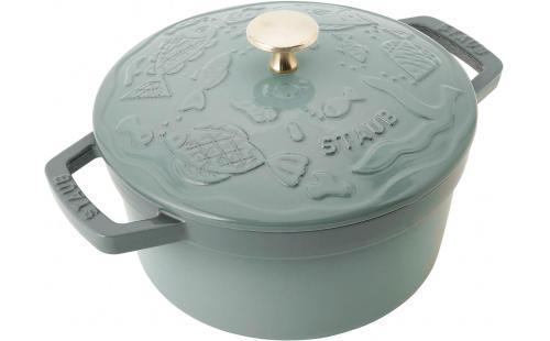 【 STAUB × minä perhonen 】 staub ストウブ 「 ココット オーシャン ラウンド 20cm ユーカリ 真鍮ノブ仕様 」 ミナ ペルホネン 両手 鋳物 ホーロー 鍋 IH対応 【日本正規販売品】 cocotte ocean Z1028-987 : ホーム&キッチン