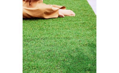 商品は防草シートが不要で、特殊加工の下地により雑草が生えにくい設計になっているため、お手入れが簡単です。さらに、芝の質感が良く、手触りも良いため、子供やペットが遊ぶ場所としても最適です。カッターで簡単にカットできるので、庭やテラスの設置場所に合わせて簡単に設置することができます。