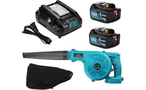 VANKO ブロワー 充電式ブロワー YN-8010 コートレス 互換 マキタ 18v バッテリー BL1850B 2個付き とマキタ 充電器 DC18RC 付き トリガー風量調整 軽量化 送風と集じんの1台2役 集塵 落ち葉の吹き飛ばし 庭掃除 洗車【4点セット】青 : DIY・工具・ガーデン