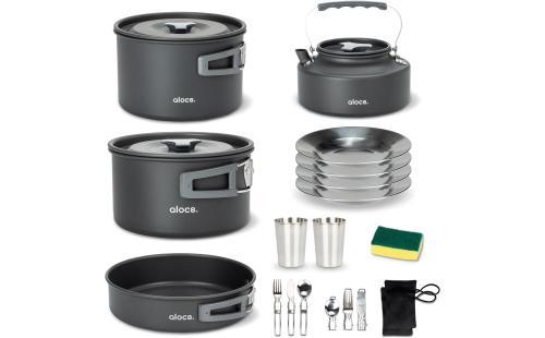 Alocsのキャンプ用調理器具セットは、2〜4人向けのアウトドア調理に最適な19点のアイテムが揃った軽量クッカーセットです。登山、ハイキング、ピクニック、災害時の備えにも活用できる万能セットです。