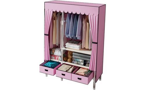 Amazon|シンプルなワードローブモダンなミニマリスト布ワードローブシングル寮ホームベッドルームレンタルルームアセンブリ大容量防塵耐久性のある収納キャビネット (Color : Pink)|ワードローブ オンライン通販