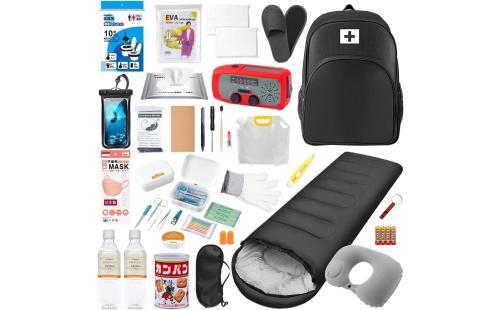 - 懐中電灯や簡易トイレ、保存食・保存水など、災害時に「これがないと困る!」という基本アイテムがしっかり網羅されています。