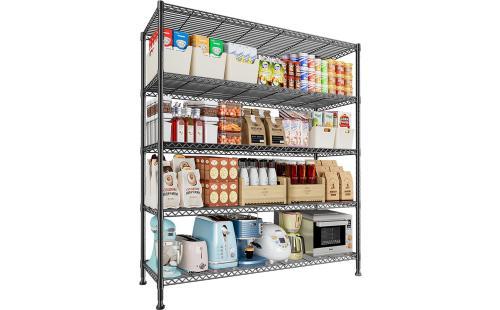 Amazon|「Humrriet」スチールラック 5段 キッチンラック 収納ラック 高さ調節可能なワイヤーラック キッチン・ガレージ・リビング用置物架 大容量収納棚 頑丈 ブラック 115*45*180cm|スチールラック本体 オンライン通販