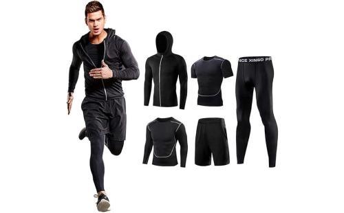 Amazon | [foveitaa] コンプレッションウェア セット メンズ トレーニングウェア 5点セット 通気防臭 スポーツ ランニングウェア パーカー 長袖シャツ 半袖シャツ ハーフパンツ タイツ 吸汗速乾 chun black XL | ジャージ上下セット 通販